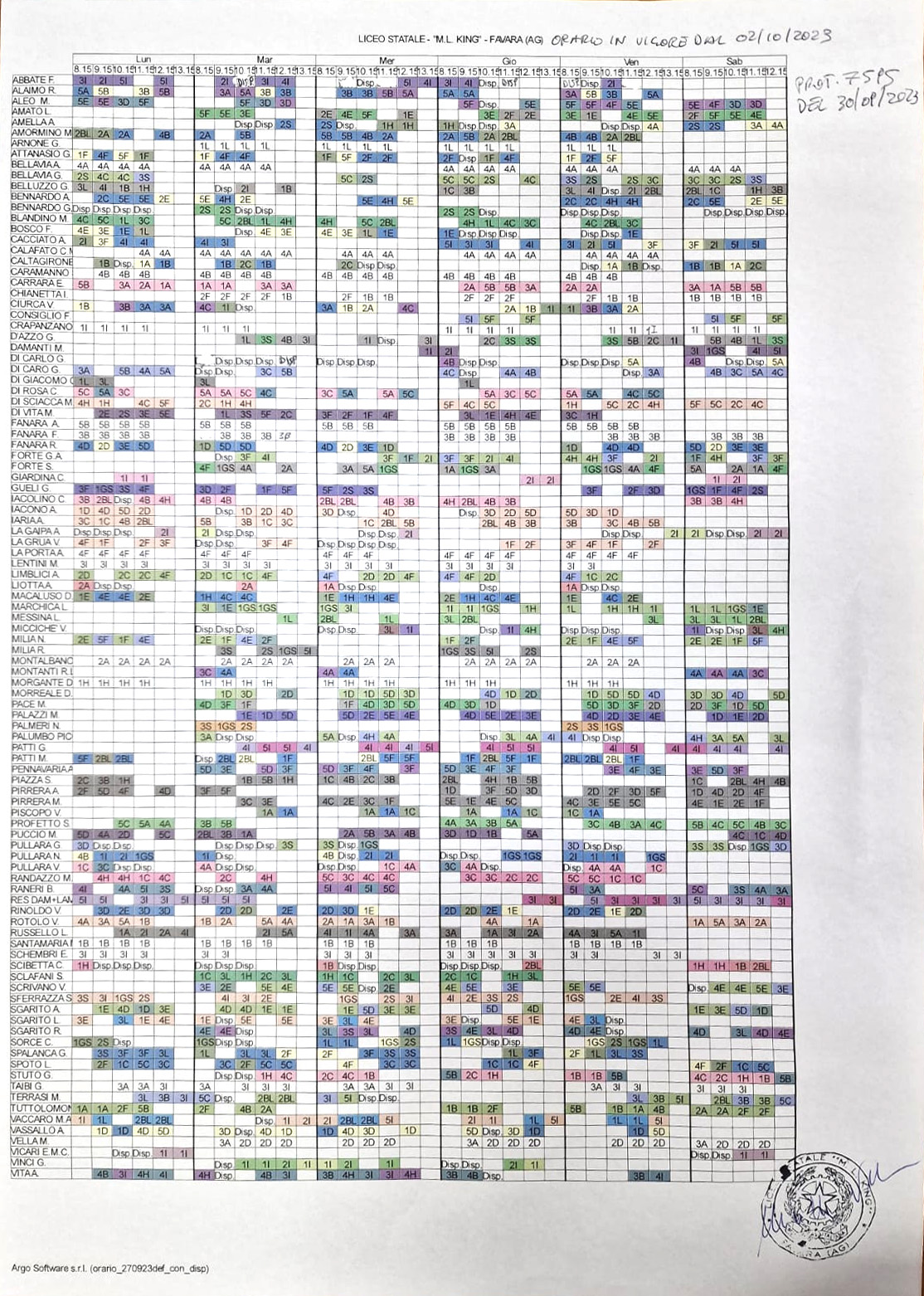 Orario delle lezioni in vigore dal 02/10/2023