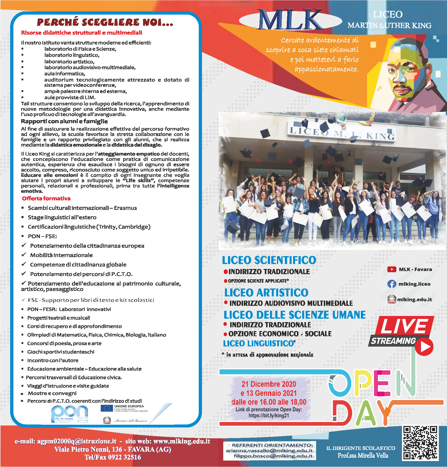LICEO SCIENTIFICO - SCIENZE UMANE - SCIENZE UMANE opzione economico-sociale - ARTISTICO audiovisivo-multimediale - LINGUISTICO - SCIENTIFICO opzione scienze applicate – SCIENTIFICO curvatura biomedica – SCIENTIFICO scienza dei dati e intelligenza artificiale – MADE IN ITALY